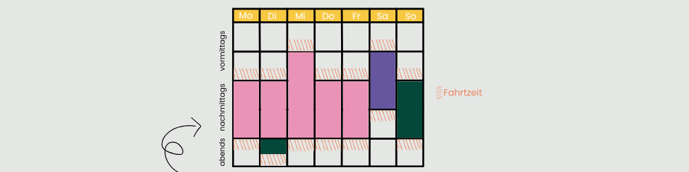 Deine Teilzeitstelle setzt sich individuell aus den angefragten Stunden der Familie(n) zusammen, die wir Dir zuteilen. Da die Kinder durch das Ganztagsschulsystem hier in Frankreich bis spätnachmittags in der Schule sind, fängt die Betreuung unter der Woche in der Regel nicht vor 16 Uhr an und endet meist zwischen 19 und 20 Uhr, wenn die Eltern nach Hause kommen. Mittwochs haben die meisten Kinder kürzer oder gar keinen Unterricht. Viele der Sprach- und Kulturvermittler*innen arbeiten an Mittwochen also halb- oder sogar ganztags.